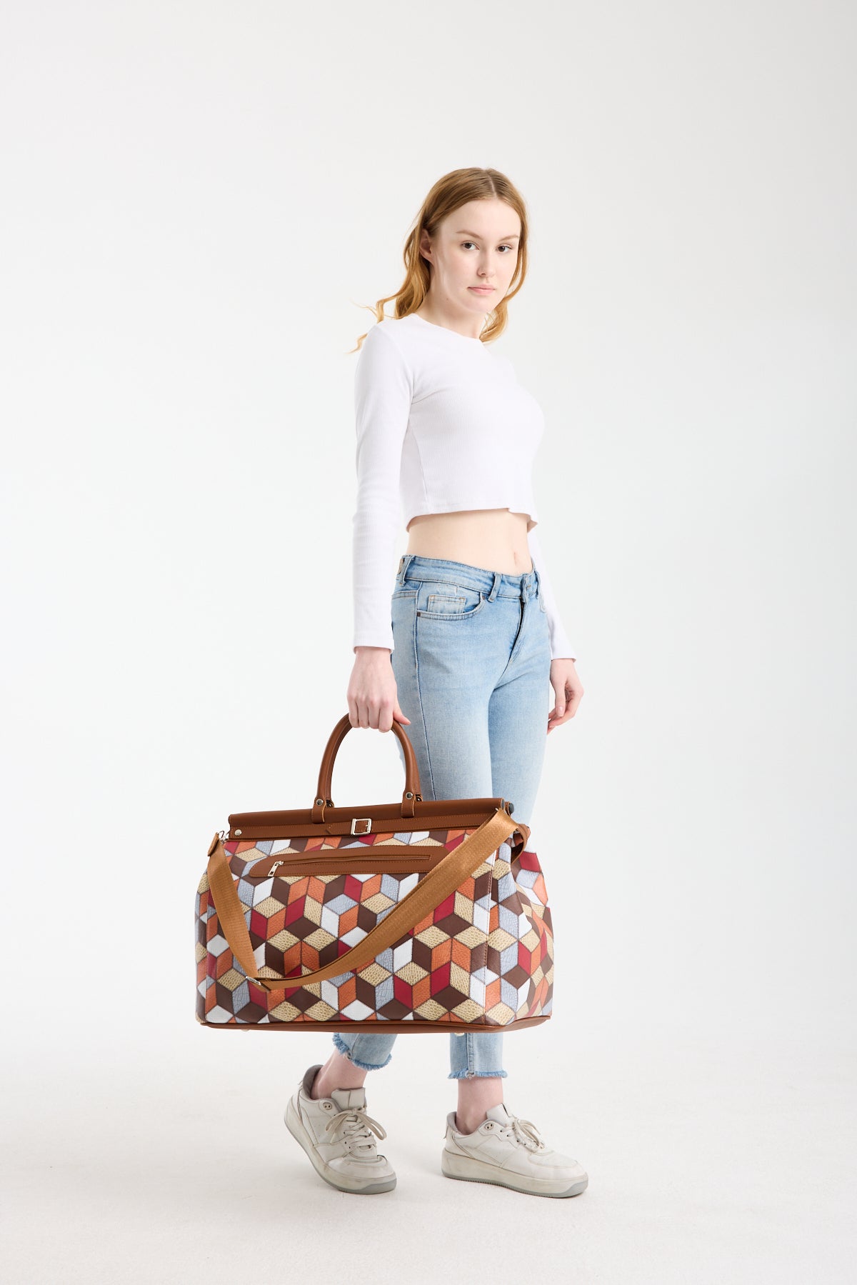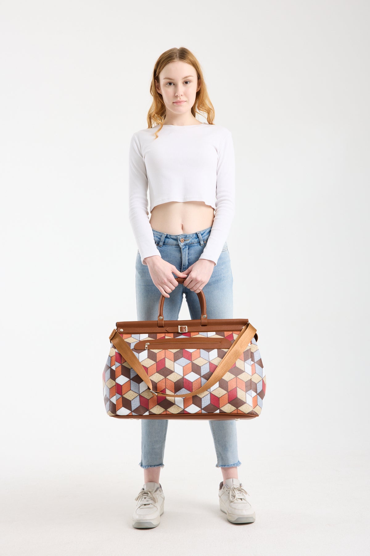 Şık ve modern mozaik desenli çanta, zarif geometrik deseniyle dikkat çekiyor. Hem günlük kullanım hem de özel günler için ideal bir aksesuar. Geniş iç hacmi ve çok yönlü kullanım özellikleriyle tarzınıza değer katıyor.