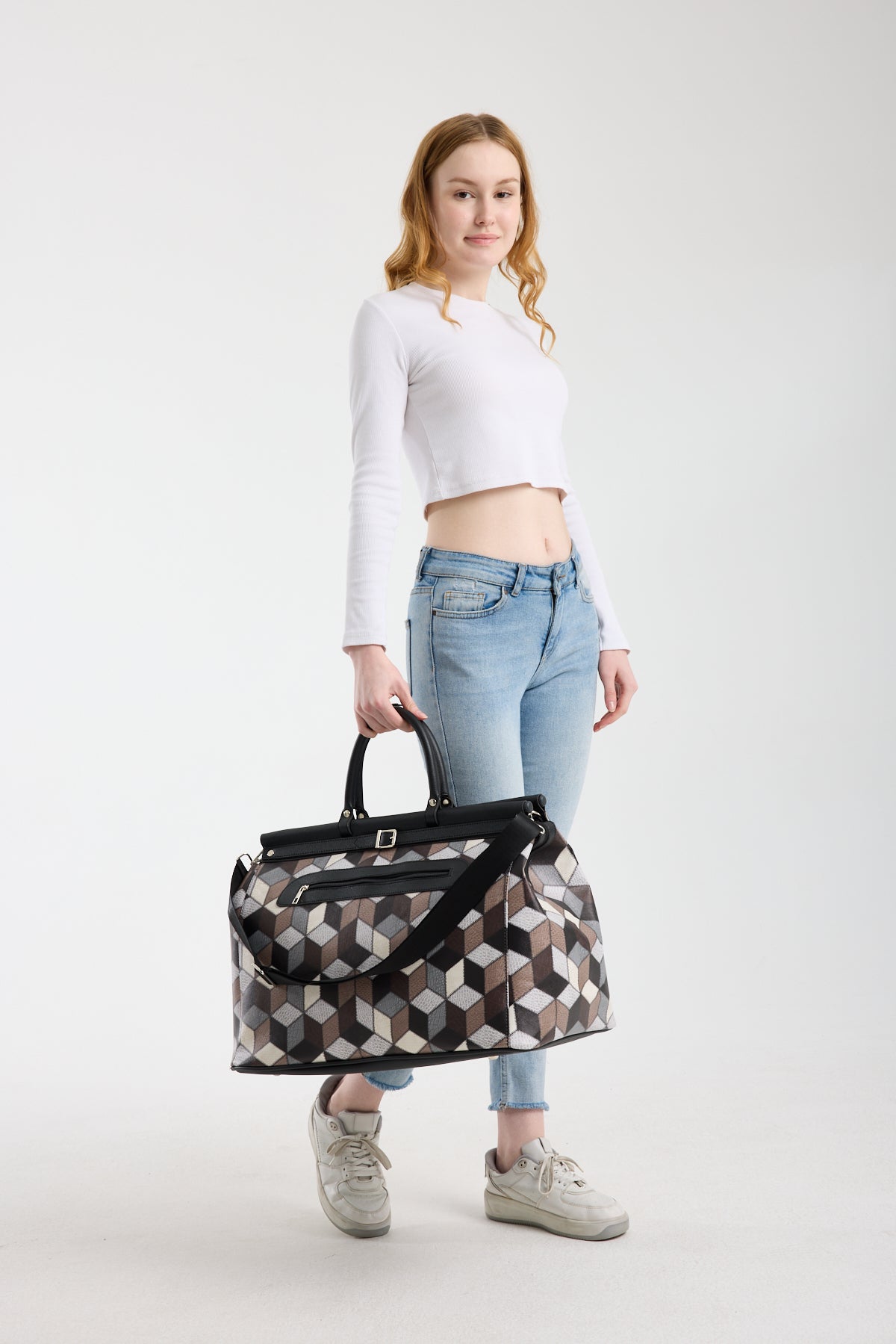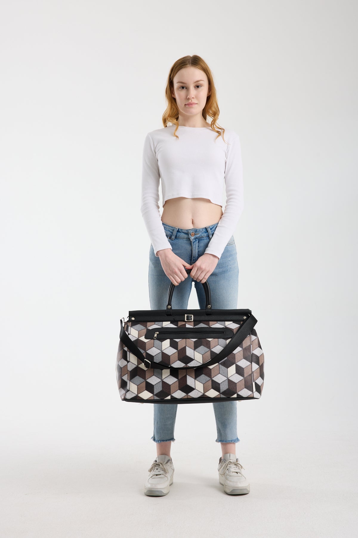 Şık ve modern mozaik desenli çanta, zarif geometrik deseniyle dikkat çekiyor. Hem günlük kullanım hem de özel günler için ideal bir aksesuar. Geniş iç hacmi ve çok yönlü kullanım özellikleriyle tarzınıza değer katıyor.